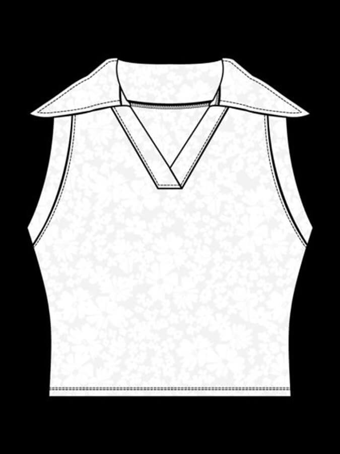 FIT: Sleeveless V-neck polo style fitted tank with collar. Bottom band panel. Length hits at natural waist. Designed for low-impact movement.